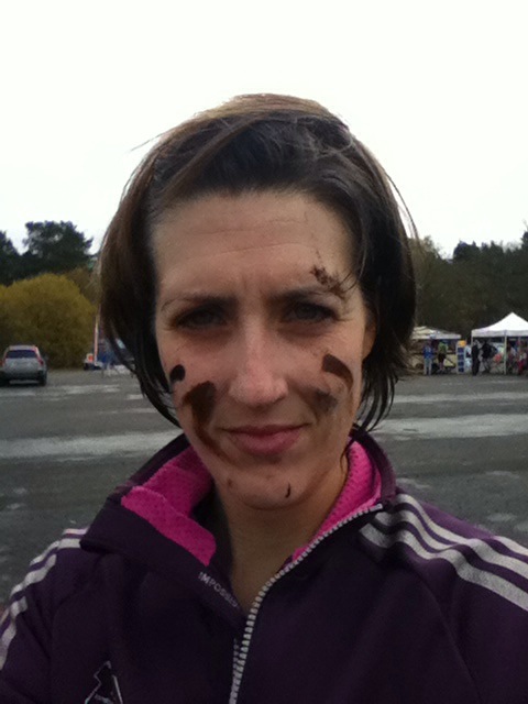 My overall impression was that it was a very well organised race. The event was well signposted from the road with plenty of car parking, an adequate number of loos and and good tea/coffee/bacon sarnie stall. There was the opportunity to buy technical souvenir t-shirts for £9 and buffs for £5. There was key storage and a decent race brief and warm up which everyone took part in for a change (usually it's just the girls). I met a couple of friends there and was cajoled into wearing camo paint which put me in the mood.